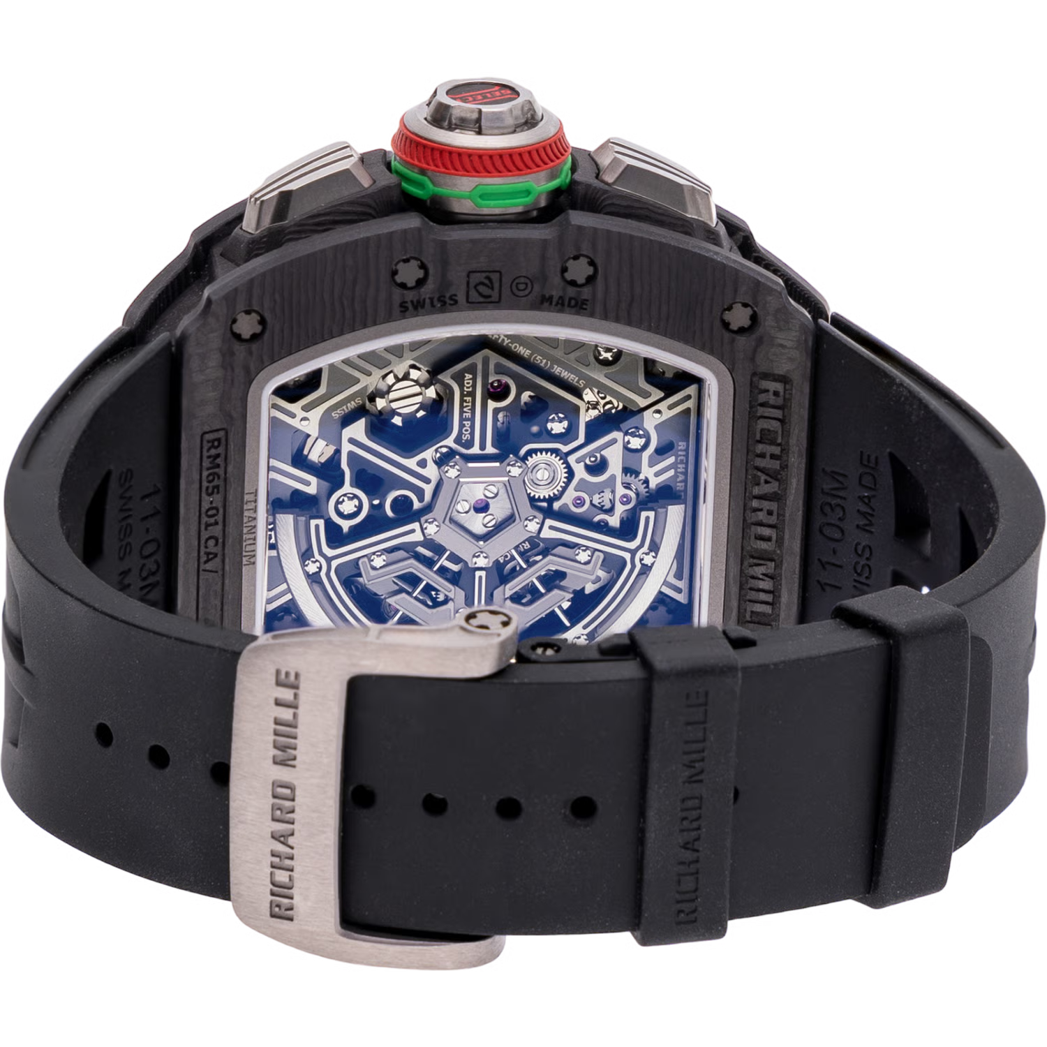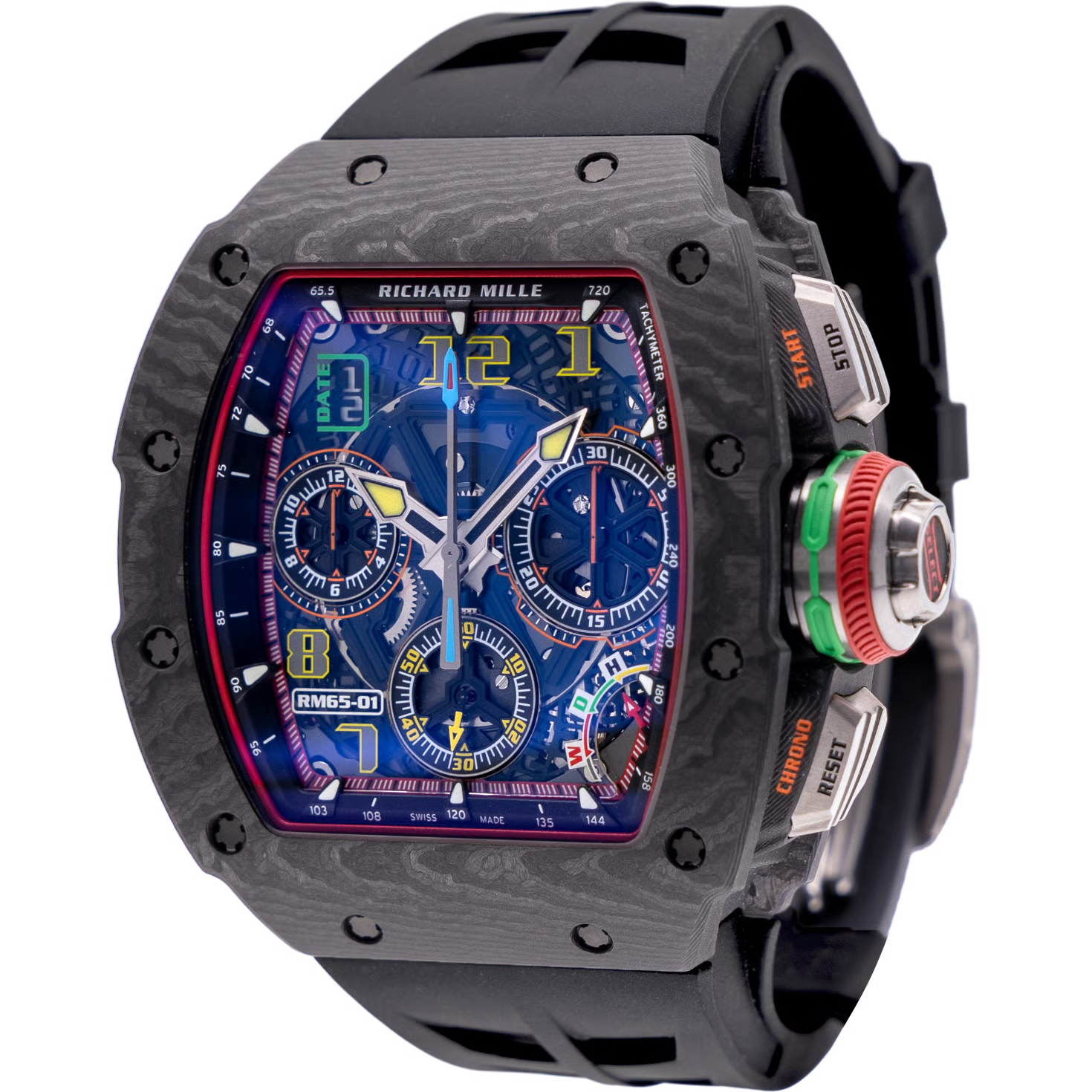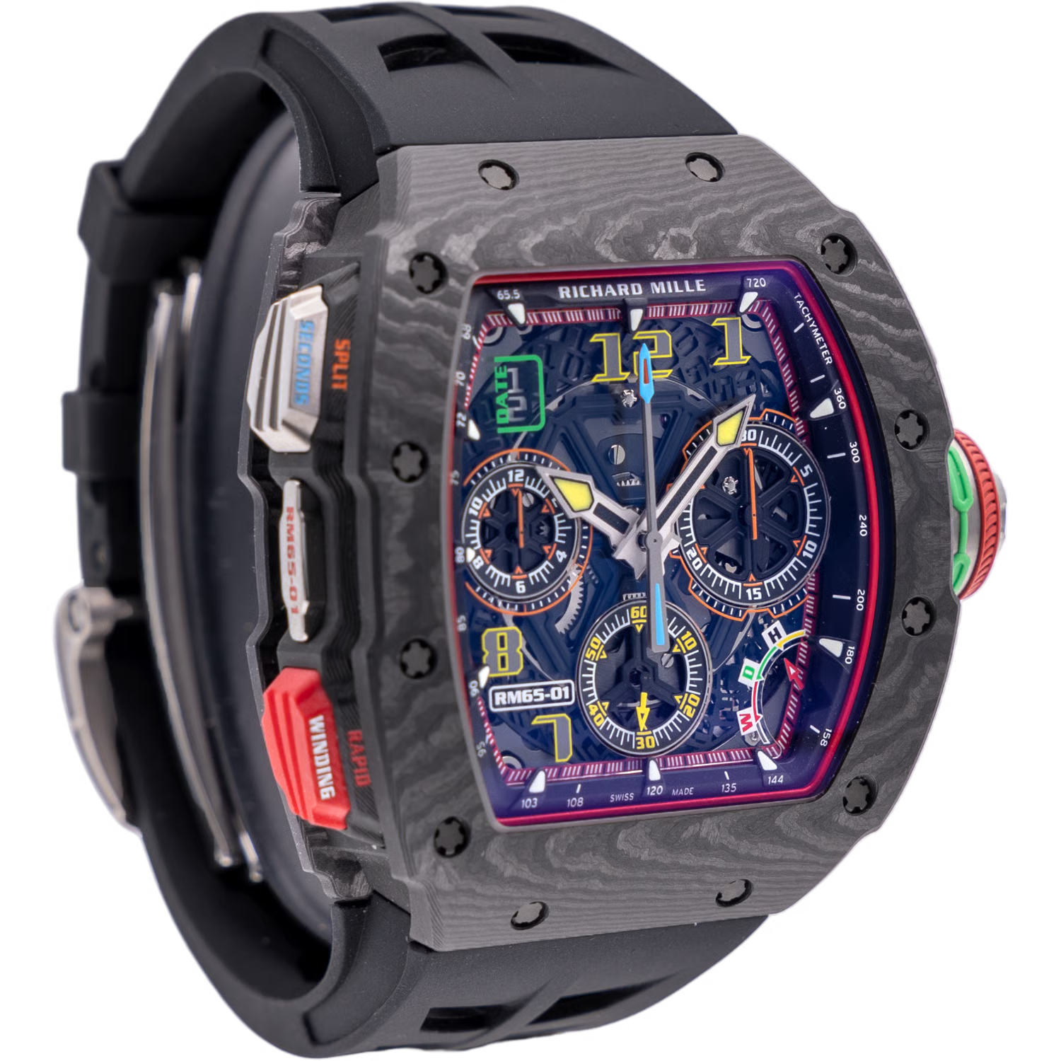 A bold statement in luxury watchmaking. The RM 65-01 features a multi-layer carbon case, intricate skeleton dial, and precision chronograph movement. Designed for those who demand exclusivity and performance in every detail.